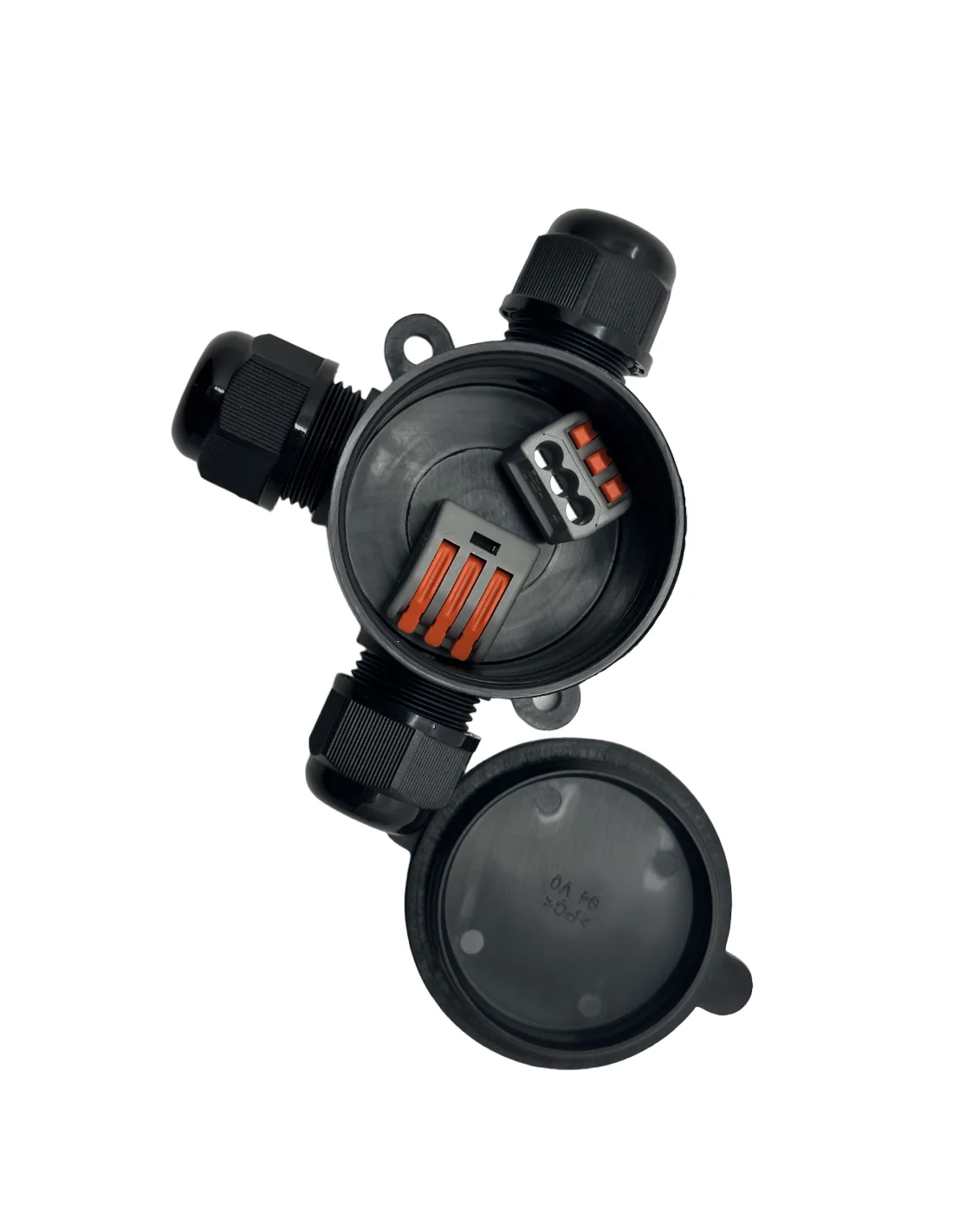 Esta Caja Circular Conector de Cable es perfecta para una variedad de aplicaciones, incluyendo instalaciones eléctricas en exteriores, proyectos de paisajismo, iluminación de jardines, y cualquier entorno donde la protección contra la humedad y el polvo sea crucial.