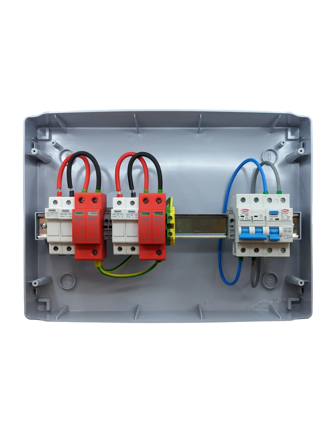 Equipado con 2 String y 4 Fusibles de 15A, este cuadro eléctrico está preparado para una gestión energética robusta y segura. Los fusibles de alta capacidad garantizan una protección efectiva contra sobrecargas, asegurando el funcionamiento óptimo de tus dispositivos y equipos eléctricos.