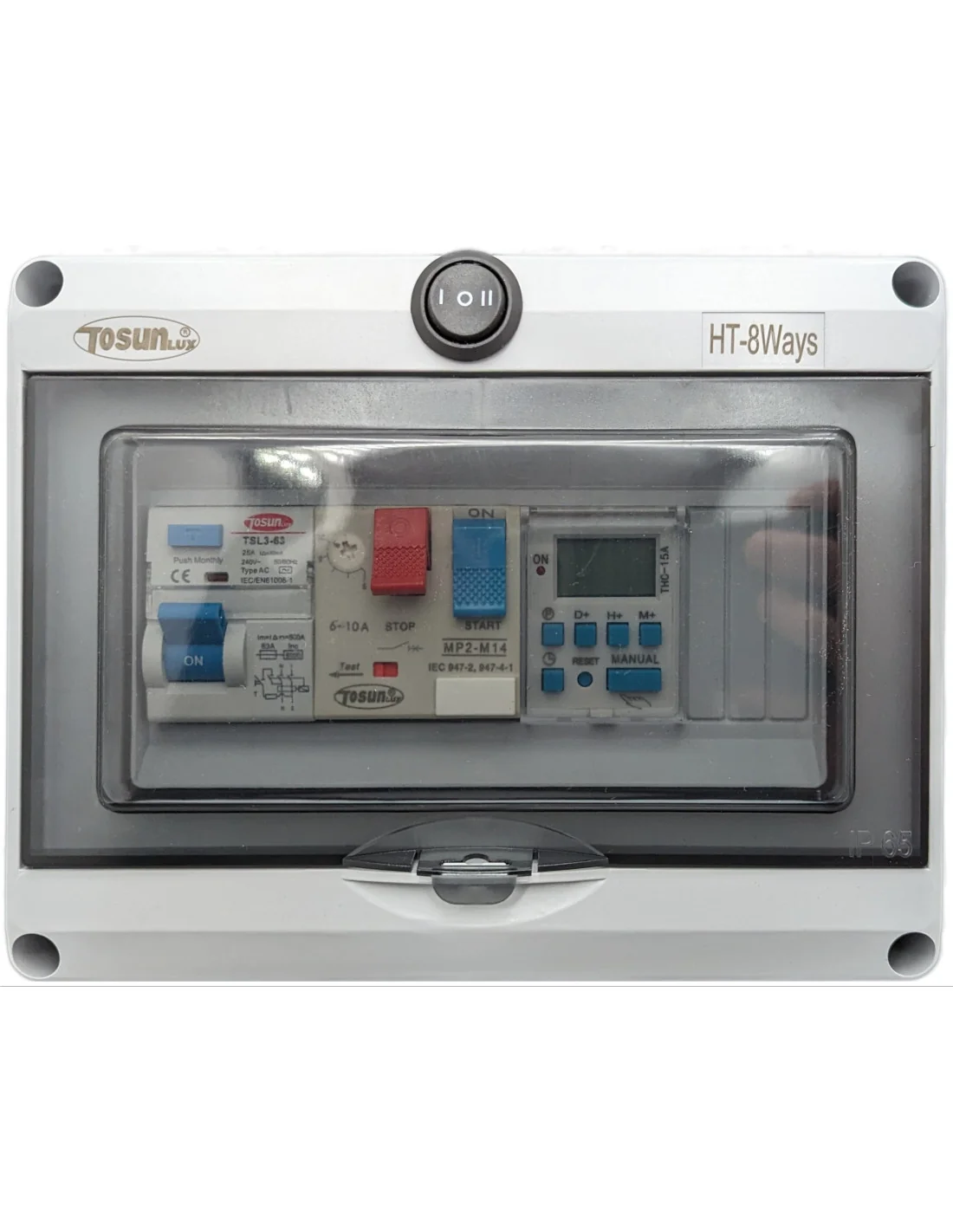 Caja resistente al agua, al polvo y a la exposición solar. Perfecta para instalación en exteriores como casetas de depuradora o entornos húmedos.Instalación sencilla: