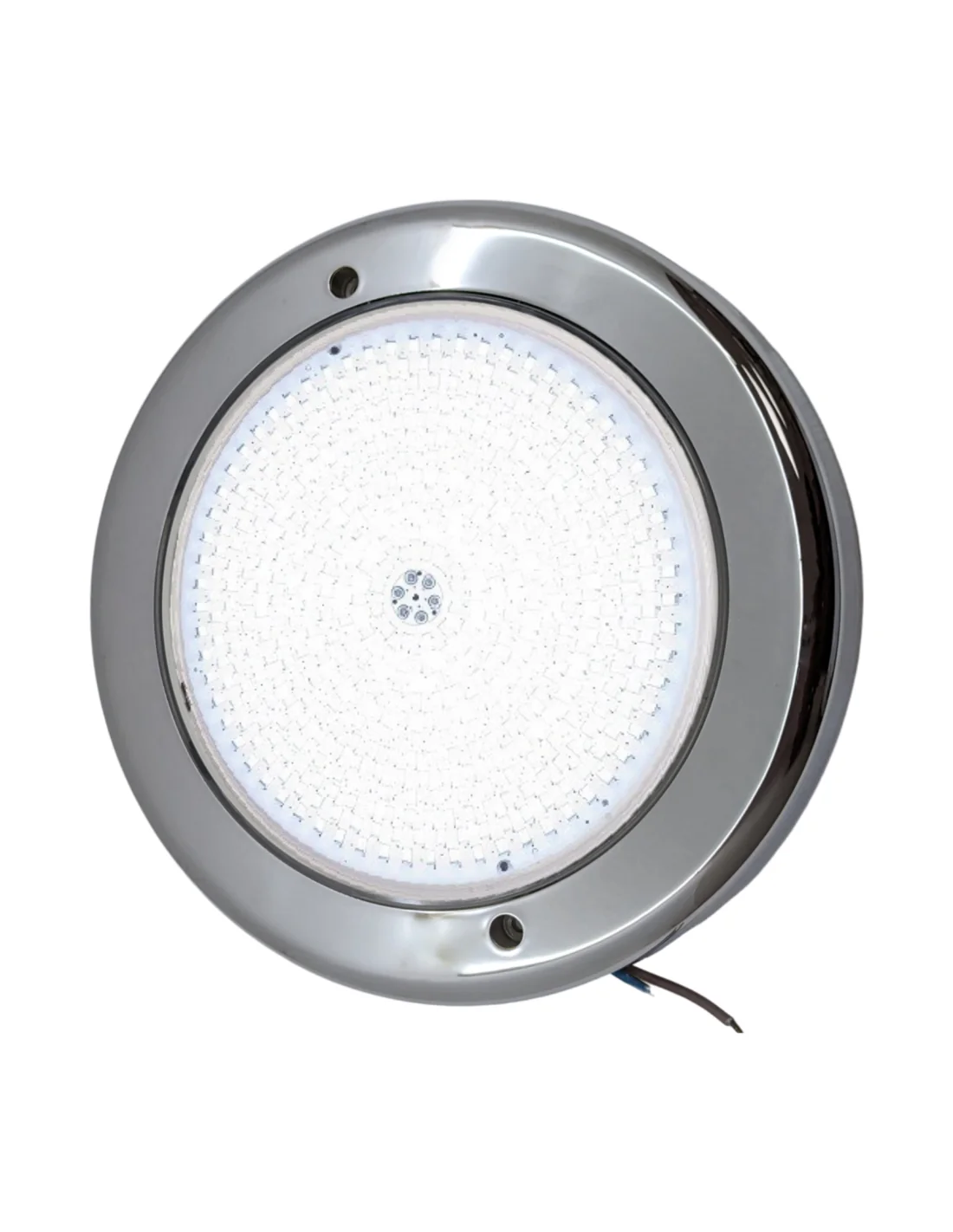 Fabricado con acero inoxidable AISI316 de alta calidad, este foco es altamente resistente a la corrosión, incluso en entornos con agua salada y productos químicos utilizados en las piscinas. El acero inoxidable brillante no solo garantiza una larga vida útil, sino que también aporta un toque moderno y elegante al diseño de la piscina.Iluminación Potente y Eficiente