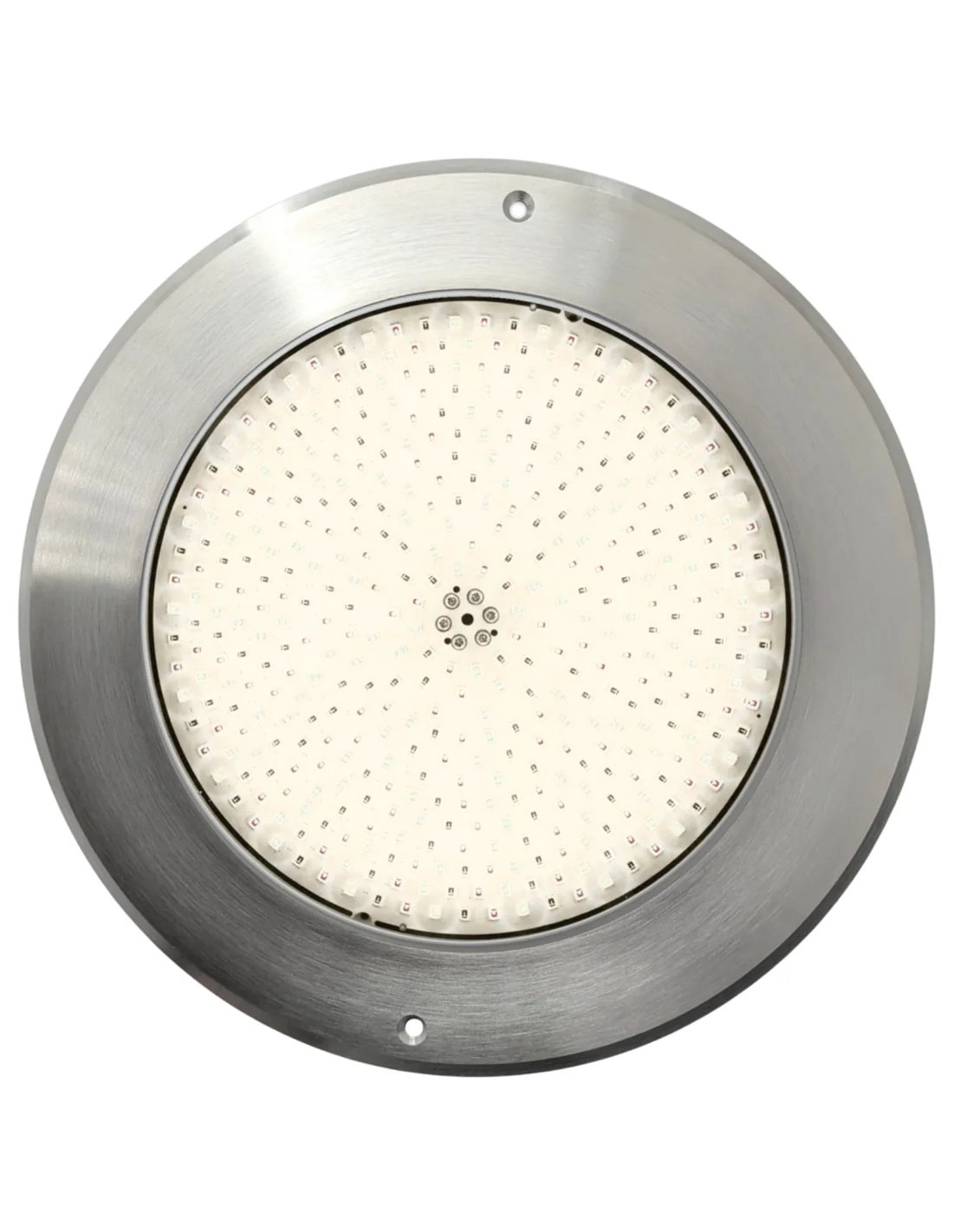 Este foco LED de piscina destaca por su fabricación en acero inoxidable de alta calidad, ofreciendo una excelente resistencia a la corrosión y una apariencia moderna. Su diseño extra plano, con un diámetro de tan solo 28 cm, lo convierte en una solución estética y discreta para todo tipo de piscinas.