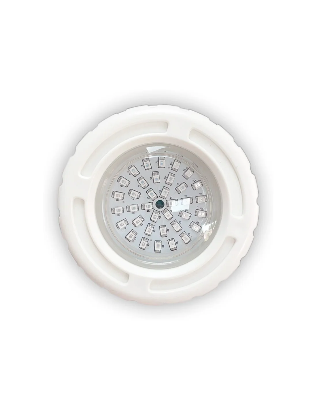 - Fabricación en ABS Blanco: El foco está fabricado en ABS blanco de alta calidad, lo que garantiza una larga vida útil y resistencia a las condiciones acuáticas. Su diseño se integra a la perfección con otros elementos de iluminación en la piscina, manteniendo una estética uniforme.