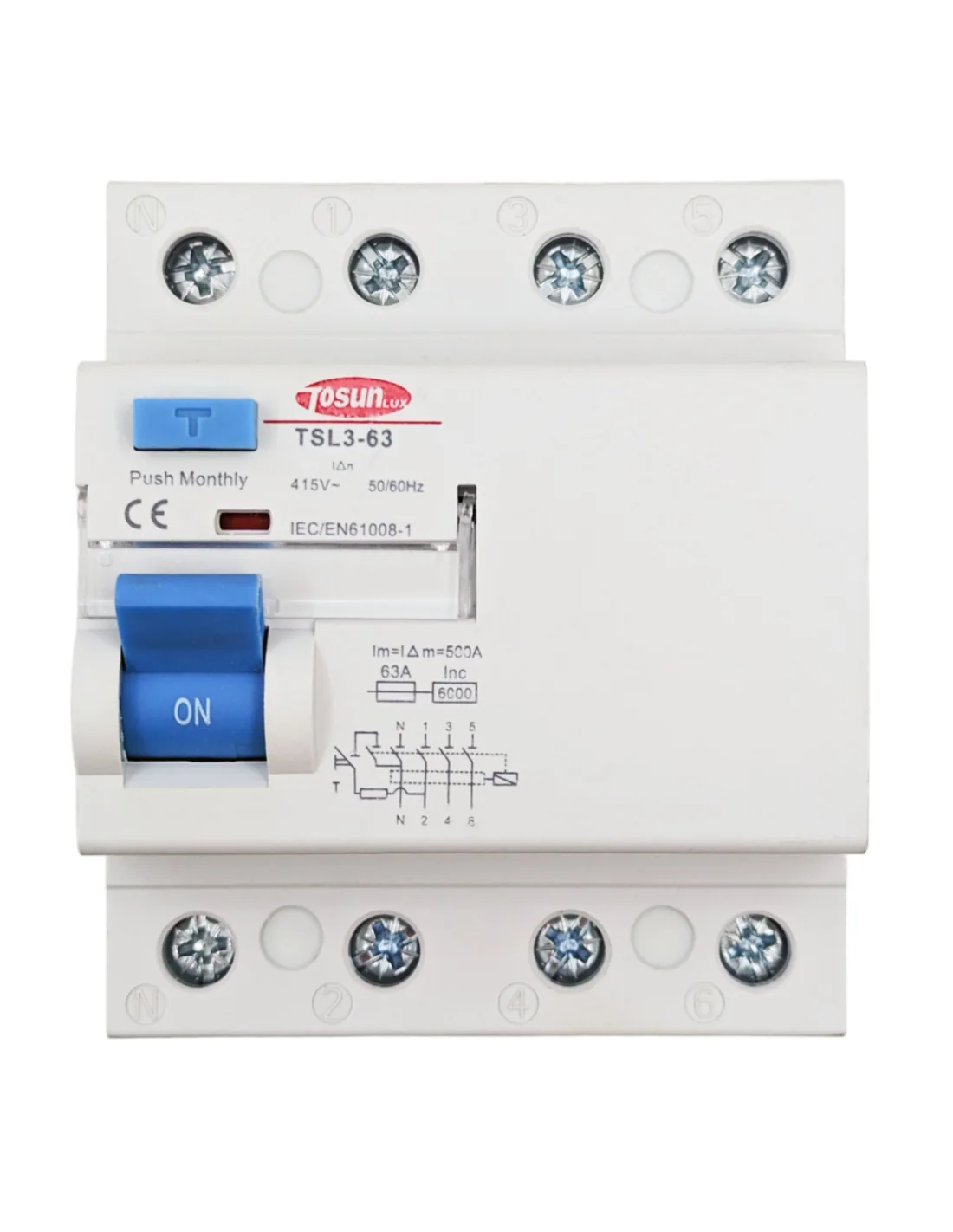 El Diferencial Trifásico TSL3-63 de Tosunlux está diseñado para proporcionar una protección efectiva contra fugas de corriente, fallos eléctricos y riesgos de electrocución en instalaciones residenciales, comerciales e industriales. Su tecnología avanzada y su diseño robusto garantizan un funcionamiento seguro y eficiente, incluso en entornos exigentes.