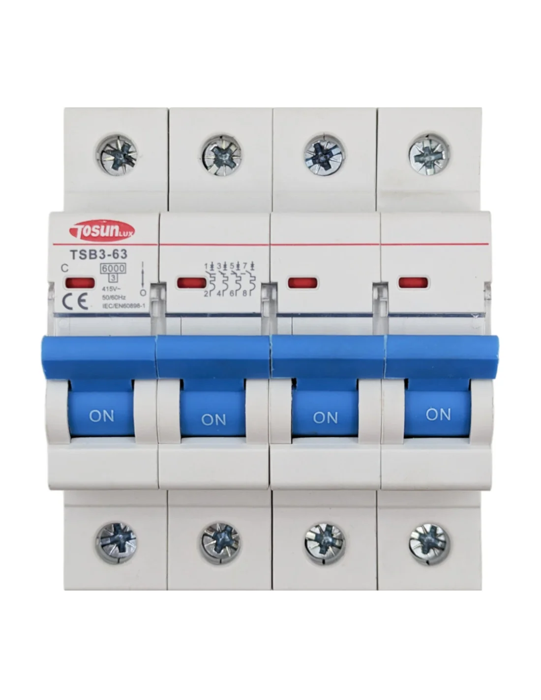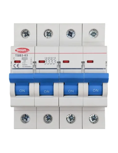 Interruptor Magnetotérmico 4P: Protección Avanzada para Sistemas Trifásicos. Diseñado para garantizar seguridad contra sobrecarga y cortocircuito en aplicaciones comerciales e industriales.