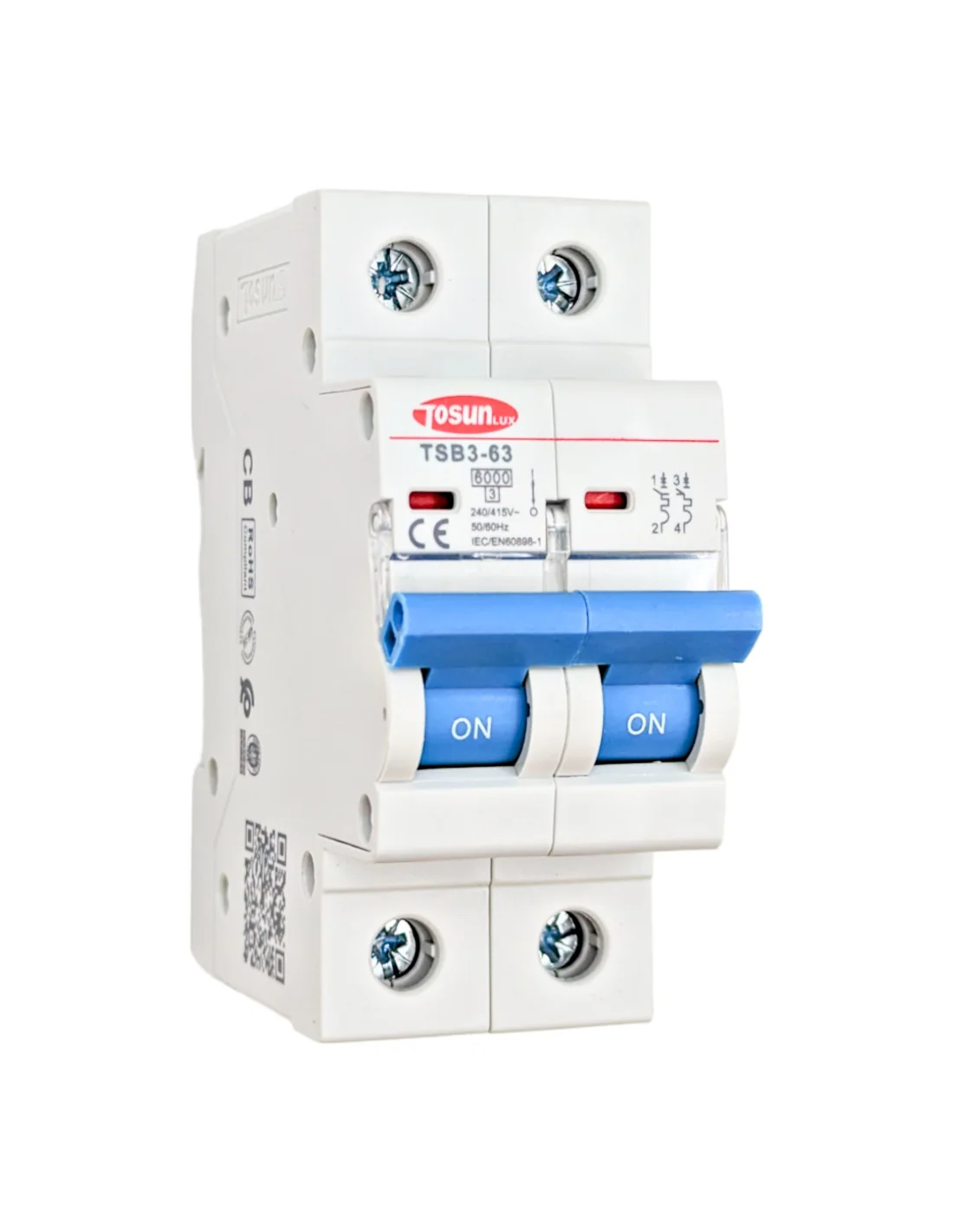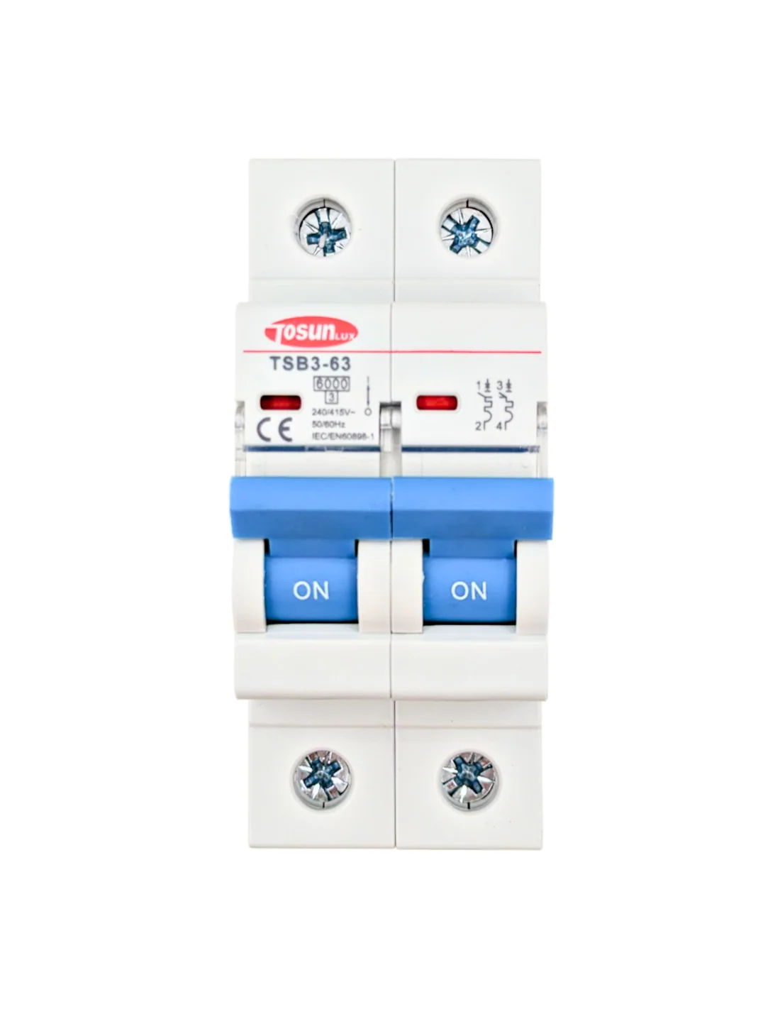 El Interruptor Magnetotérmico TSB3-63 2P de Tosun representa la vanguardia en tecnología de protección eléctrica. Diseñado meticulosamente para aplicaciones comerciales e industriales, este interruptor no solo cumple con las normativas internacionales IEC60898-1 y IEC60947-2, sino que también supera las expectativas en términos de rendimiento y seguridad.