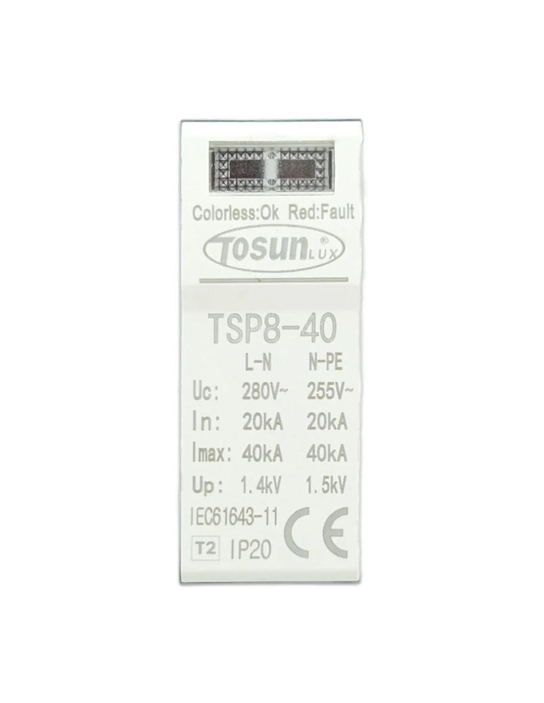Este módulo de reemplazo está diseñado específicamente para el protector de sobretensiones TSP8-40kA, un modelo de alta calidad con capacidad de protección de hasta 40kA, ideal para sistemas eléctricos de corriente alterna (AC). Permite restaurar la capacidad de protección del sistema sin tener que reemplazar todo el dispositivo, lo que resulta en un ahorro significativo.