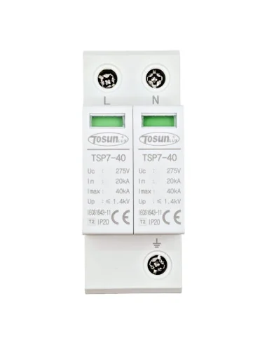 El Protector de Sobretensiones Transitorias TSP7-40kA AC 2P de Tosun es una solución de seguridad eléctrica diseñada para proteger tus equipos y sistemas eléctricos de las sobretensiones transitorias, un aspecto vital para mantener la integridad y funcionalidad de tus dispositivos.
