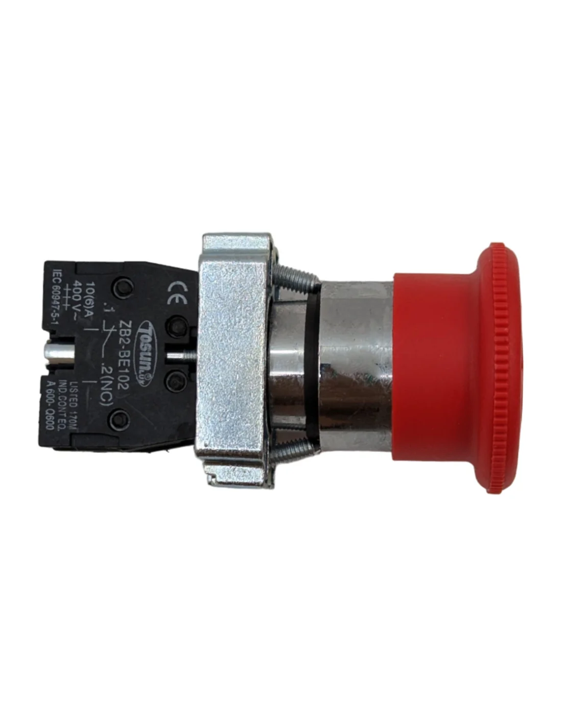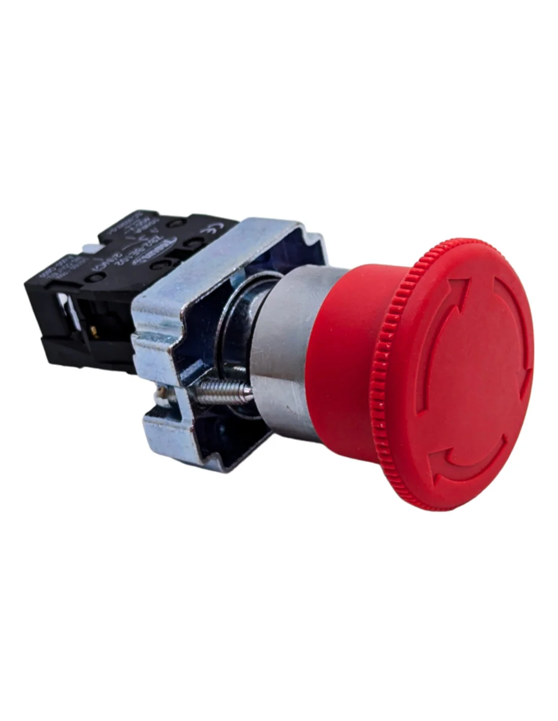 Pulsador Tipo Seta para Paro de Emergencia NC Empotrable: Garantiza una respuesta rápida y efectiva en situaciones críticas. Esta seta pulsadora, empotrable en superficies, es esencial para la seguridad operativa.